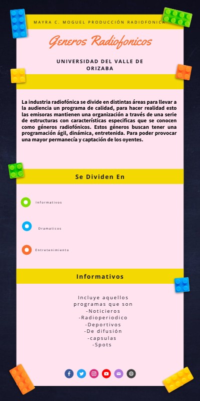 Incluye aquellos programas que son-Noticieros-Radioperiodico -Deportivos -De difusión -capsulas -Spots