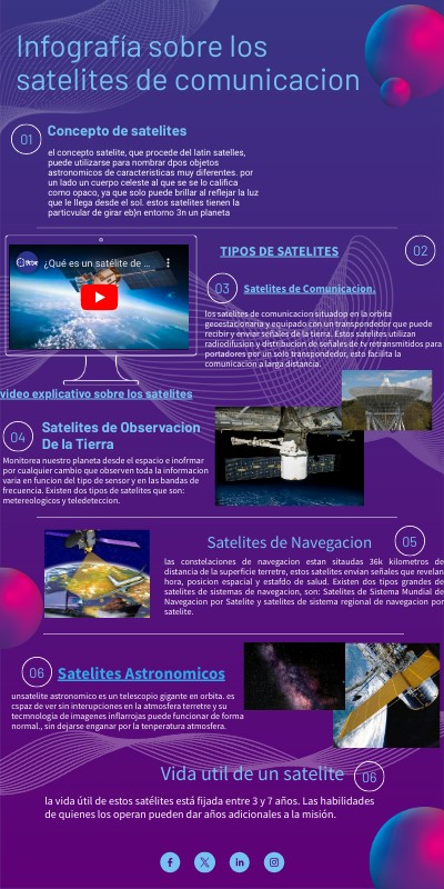 Monitorea nuestro planeta desde el espacio e inofrmar por cualquier cambio que observen toda la informacion varia en funcion del tipo de sensor y en las bandas de frecuencia. Existen dos tipos de satelites que son: metereologicos y teledeteccion.