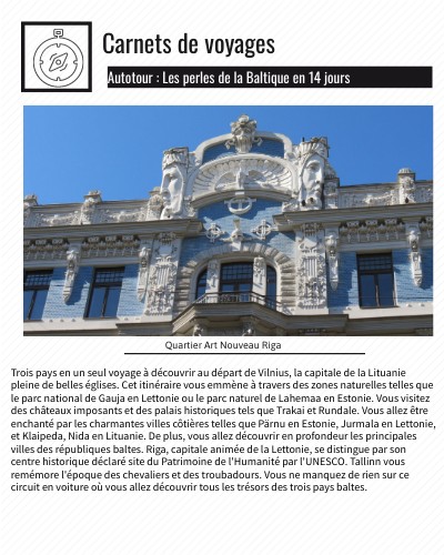 voiture où vous allez découvrir tous les trésors des trois pays baltes.