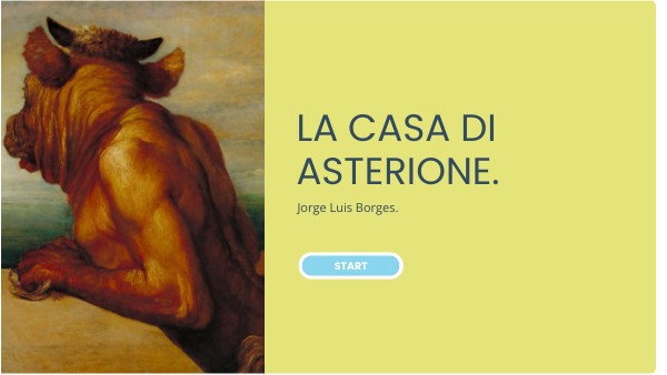 In questo racconto di Borges, il protagonista è Asterione, il Minotauro, che parla di sè e della sua casa. Egli racconta che la sua abitazione è formata da tante porte che restano aperte agli uomini e agli animali, per tutto il giorno e la notte, e chi entra troverà solitudine e tranquillità; inoltre egli dice, anche, che la sua casa è unica: tutto ciò lo porta ad essere accusato di superbia e di pazzia. Una volta, Asterione racconta di essere andato per le strade e, poi, di essere rientrato prima che arrivasse il buio, perchè le facce spaventate delle persone gli facevano paura. La gente pregava e fuggiva, qualcuno si arrampicava sulle colonne e altri cercavano rifugio in mare. Asterione, inoltre, racconta che non esistono altri esseri come lui sulla terra, così come non esistono grandi case come la sua. Egli descrive come passa il tempo nella sua casa, giocando a rimpiattino e facendo giochi pazzi e agitati, ma il suo gioco preferito è quello di giocare con un altro Asterione, al quale gli mostra tutte le particolarità della casa. Allora inizia a riflettere sulla sua casa, sostenendo che è grandissima come un mondo. Una notte, una visione notturna gli rivela che i mari e i templi sono infiniti e che solo due cose sono uniche, lui e il sole, intricato come il suo labirinto. Asterione racconta che ogni nove anni vengono alla sua casa nove uomini che cadono uno dopo l'altro e che uno di questi uomini, prima di morire, gli ha detto che, un giorno, sarebbe arrivato un redentore cioè un liberatore. Asterione, allora, inizia a pensare a come potrà essere il suo redentore, forse un toro con volto d'uomo oppure come lui. Il racconto si conclude con l'uccisione del Minotauro cioè di Asterione da parte di Teseo, innamorato di Arianna.