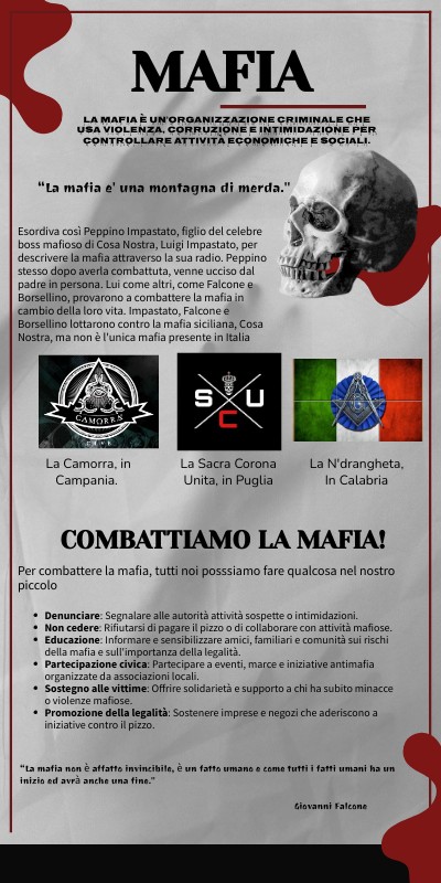 - Educazione: Informare e sensibilizzare amici, familiari e comunità sui rischi della mafia e sull'importanza della legalità.