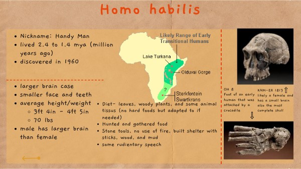 KNM-ER 1813 likely a female and has a small brain also the most complete skull