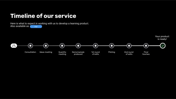 Here is what to expect in working with us to develop a learning product.Also available as