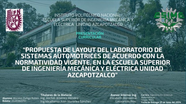 “Propuesta de Layout del laboratorio de Sistemas Automotrices de acuerdo con la normatividad vigente, en la Escuela Superior De Ingeniería Mecánica y Eléctrica Unidad Azcapotzalco”