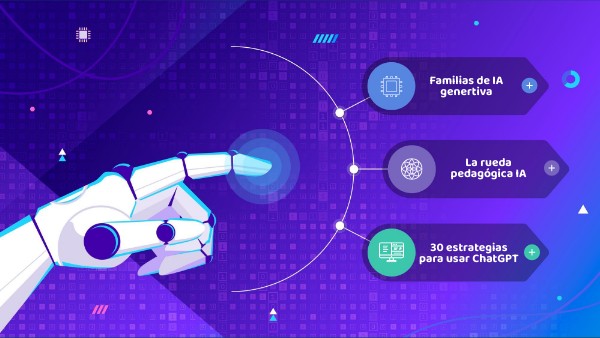 Este recurso educativo ha sido desarrollado por Edrei Robles, un profesor apasionando en tecnológia educativa y Phd en física educativa, que ha centrado su investigación en el aprendizaje basado en problemas, integrando inteligencia artificial. Uno de sus logros más significativos es el diseño y desarrollo de la metodología de aprendizaje Digital NAO de la Universidad Tecmilenio. Robles, produce esta infografía como mecanismo para orientar la variedad de enfoques innovadores que pueden darse a través del uso de IA para potenciar la enseñanza y el aprendizaje en las aulas universitarias. Presenta una propuesta de uso de ChatGPT donde éste actúa como un asistente docente, que interviene en las estrategias para fomentar el pensamiento crítico, analítico y la colaboración a través de diversas estrategias pedagógicas y contribuir en la mejora de los resultados de aprendizaje.