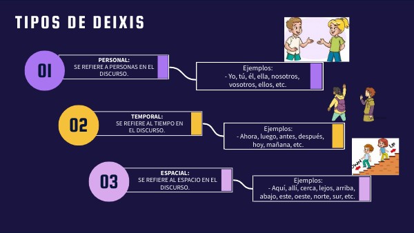 Temporal: Se refiere al tiempo en el discurso.