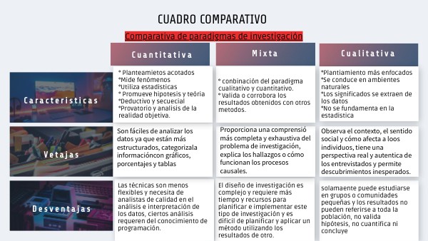 Cuadro comparativo paradigma de investigación