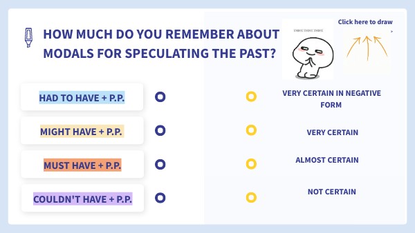 HOW MUCH DO YOU REMEMBER ABOUT MODALS FOR SPECULATING THE PAST?
