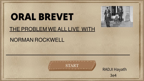 The problem we all live with en francais s'appelle notre problème à tous en français . C'est une œuvre emblématique de Norman Rockwell car elle a été peinte pendant la ségrégation et représente une jeune fille qui va être très importante dans la lutte contre la ségrégation .
