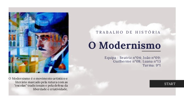 O Modernismo é o movimento artístico e literário marcado pela rutura com as "escolas" tradicionais e pela defesa da liberdade e criatividade.