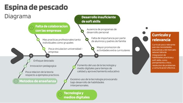 Currículo poco relevante para las necesidades educativas y del mercado laboral, falta de integracion de habilidades practicas y soft skills, como pensamiento critico, resolucion de problemas y comunicacion efectiva.