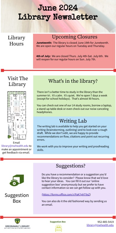 Email library@nwhealth.edu to make an appointment or get feedback via email.