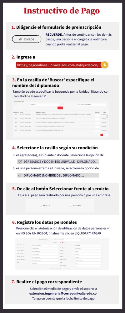 Selección el medio de pago y envíe el soporte a extension.ingenieria@correounivalle.edu.co Tenga en cuenta que la fecha límite de pago