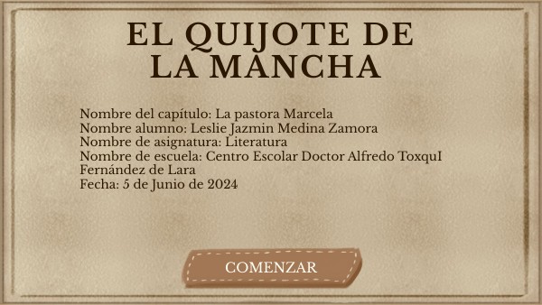 Nombre del capítulo: La pastora Marcela Nombre alumno: Leslie Jazmin Medina Zamora Nombre de asignatura: Literatura Nombre de escuela: Centro Escolar Doctor Alfredo ToxquI Fernández de Lara Fecha: 5 de Junio de 2024