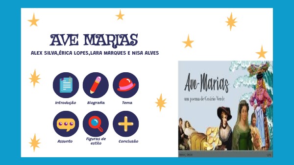 Este trabalho foi realizado na disciplina de Português,módulo 6, com intuito de ficar a saber mais sobre a obra O sentimento dum Ocidental e o tema que vamos falar hoje é ´´Ave Marias``.