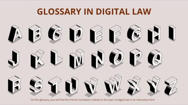 On this glossary, you will find the French translation related to the topic of digital law in an interactive form