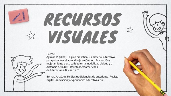 Fuente: Aguilar, R. (2004). La guía didáctica, un material educativo para promover el aprendizaje autónomo. Evaluación y mejoramiento de su calidad en la modalidad abierta y a distancia de la UTP. Revista Iberoamericana de Educación a Distancia, 7 Bernal, A. (2010). Medios tradicionales de enseñanza. Revista Digital Innovación y experiencias Educativas, 35