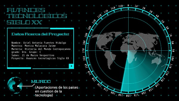 Nombre: Uriel Antonio Fuentes Hidalgo Maestra: Monica Malacara Jaime Materia: Historia del Mundo Conteporaneo grado: 6to. Grupo: C Sabes: 21 de Marzo Vespertino Proyecto: Avances tecnologicos Siglo XX