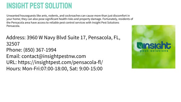 Unwanted houseguests like ants, rodents, and cockroaches can cause more than just discomfort in your home; they can also pose significant health risks and property damage. Fortunately, residents of the Pensacola area have access to reliable pest control services with Insight Pest Solutions Pensacola.