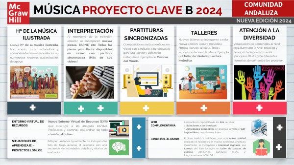 El libro tendrá 7 unidades, con una nueva unidad dedicada al folclore y a la música tradicional andaluza. Igualmente, se incorporan 2 breakout digitales. Los Anexos del libro incluyen un taller de danzas, de ukelele, conciertos, partituras online. y Programaciones LOMLOE.