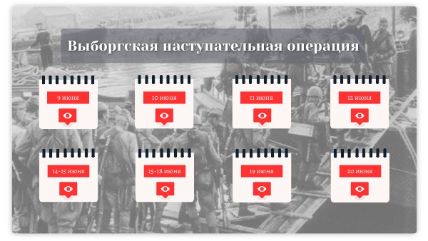 Из мемуаров главнокомандующего финской армией маршала К.Г. Маннергейма: «20 июня 21-я армия противника перешла в наступление в полосе Выборг-Вуокси и добилась значительных успехов. Выборг пал после непродолжительного боя, который по силе нельзя было сравнить с боями за этот старинный город в последние дни Зимней войны. Падение Выборга было горьким ударом для боевого духа войск и одновременно означало потерю прочного опорного пункта, который должен был бы связать упорной обороной значительные силы противника».