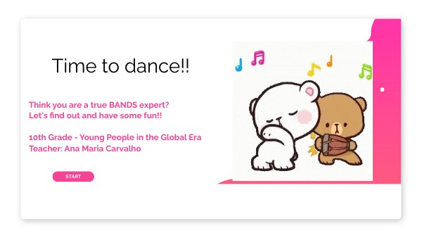 Think you are a true BANDS expert?Let's find out and have some fun!! 10th Grade - Young People in the Global Era Teacher: Ana Maria Carvalho