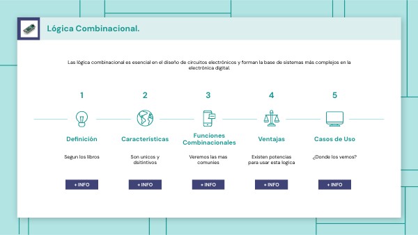 - Ausencia de Retroalimentación:No hay bucles o retroalimentación en los circuitos de lógica combinacional.
