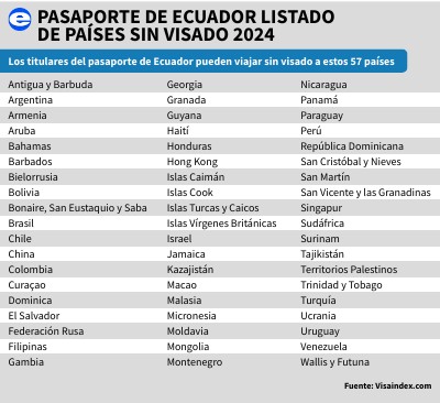 Pasaporte de Ecuador Listado de países sin visado 2024