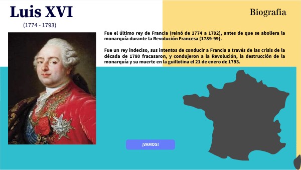 Fue el último rey de Francia (reinó de 1774 a 1792), antes de que se aboliera la monarquía durante la Revolución Francesa (1789-99). Fue un rey indeciso, sus intentos de conducir a Francia a través de las crisis de la década de 1780 fracasaron, y condujeron a la Revolución, la destrucción de la monarquía y su muerte en la guillotina el 21 de enero de 1793.