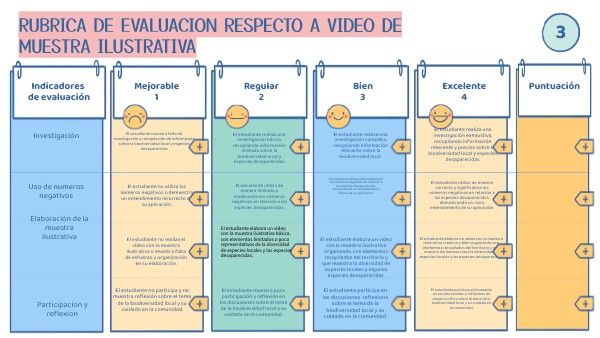 El estudiante elabora un video con la muestra ilustrativa creativa y bien organizada, con elementos recopilados del territorio y que muestra de manera clara la diversidad de especies locales y las especies desaparecidas.