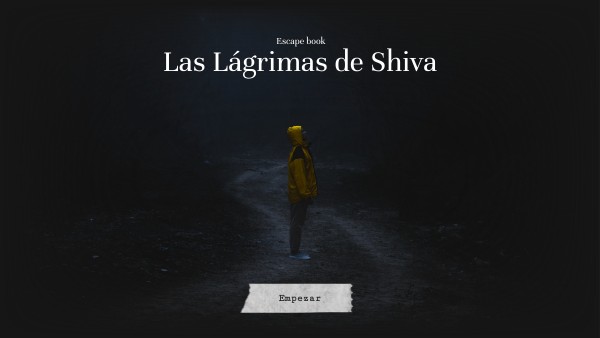 Has entrado en un mundo oscuro y desconocido del que tienes que salir, respondiendo preguntas sobre el libro, antes de que sea demasiado tarde y quedes encerrado/a para siempre. En tus manos está encontrar Las lágrimas de Shiva.Completa correctamente cada misión e introduce la clave que te ayudará a salir de este misterioso lugar.