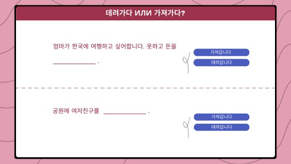 Fill in the blanks 가져가다 데려가다