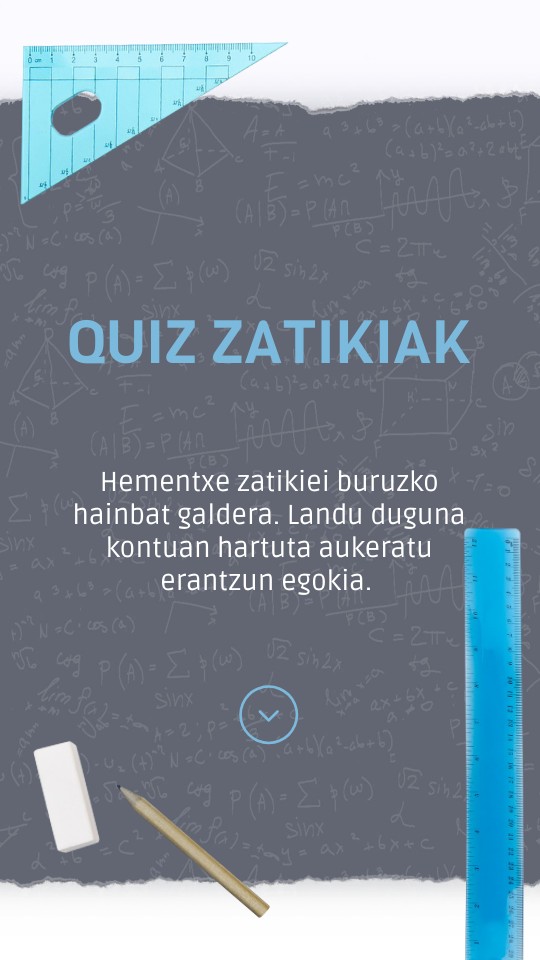 Hementxe zatikiei buruzko hainbat galdera. Landu duguna kontuan hartuta aukeratu erantzun egokia.