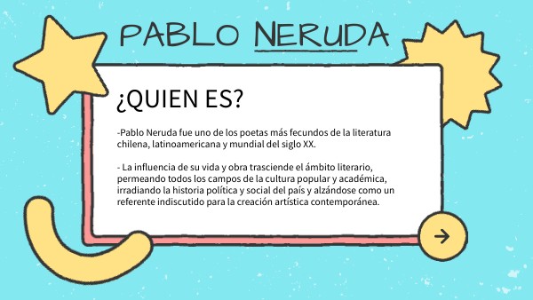 -Pablo Neruda fue uno de los poetas más fecundos de la literatura chilena, latinoamericana y mundial del siglo XX. - La influencia de su vida y obra trasciende el ámbito literario, permeando todos los campos de la cultura popular y académica, irradiando la historia política y social del país y alzándose como un referente indiscutido para la creación artística contemporánea.