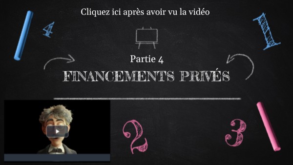 Vous trouverez ci-dessous la présentation de différentes sources de financements privés en cliquant sur les différentes bulles, ainsi qu'un focus sur le mécénat en cliquant sur le trésor.
