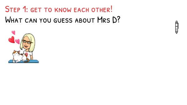 Step 1: get to know each other! What can you guess about Mrs D?