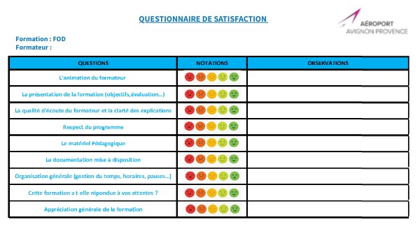 Questionnaire de satisfaction stagiaire