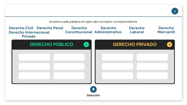 Coloca cada rama del derecho en donde corresponda, ya sea público o privado