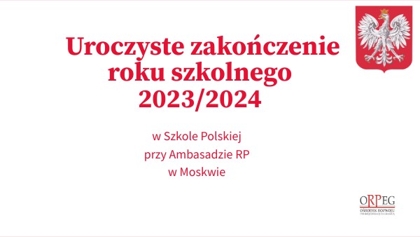 W wydarzeniu uczestniczyli dostojni goście: Ambasador Rzeczypospolitej Polskiej w Federacji Rosyjskiej Pan Krzystof Krajewski, Pani Barbara Talik - wicedyrektor ds. szkół polskich i awansu zawodowego nauczycieli w ORPEG, Kierownik Wydziału Konsularnego i Polonii Pan Sławomir Łuczak oraz Pani Konsul Anna Domska-Łuczak. Pan Ambasador serdecznie powitał nową Panią Dyrektor Szkoły Polskiej przy Ambasadzie RP, Panią Agnieszkę Moczydłowską oraz życzył obecnym wielu sukcesów i radości.