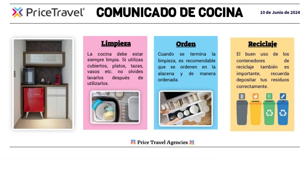 La cocina debe estar siempre limpia. Si utilizas cubiertos, platos, tazas, vasos etc. no olvides lavarlos después de utilizarlos.
