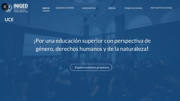 El Instituto de Investigación en Igualdad, Género y Derechos (INIGED) es una unidad académica especializada de la Universidad Central del Ecuador, fundada en 2017, que trabaja por la transformación estructural de la educación superior desde una perspectiva de igualdad de género, derechos humanos y derechos de la naturaleza. Conformado por un equipo multidisciplinario, INIGED impulsa investigaciones, procesos formativos, estrategias de prevención, acompañamiento emocional y propuestas de política pública, enfocadas en erradicar la violencia basada en género y construir espacios educativos más justos, seguros e inclusivos. A lo largo de su trayectoria, ha impactado a más de 15.000 personas mediante acciones que integran la academia con la comunidad, el cuidado con el conocimiento, y la incidencia política con la pedagogía transformadora.