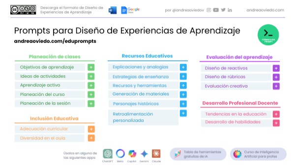La generación de materiales es el proceso de crear recursos educativos específicos para apoyar la enseñanza y el aprendizaje. Estos materiales pueden incluir presentaciones, actividades, videos, guías de estudio, hojas de trabajo, juegos didácticos, entre otros, diseñados para abordar los objetivos de aprendizaje de manera efectiva. Puedes utilizar el siguiente prompt para que ChatGPT te ayude diseñar tus materiales didácticos.