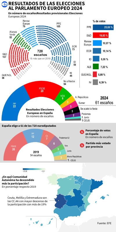 En número de escañosResultados provisionales Elecciones Europeas 2024