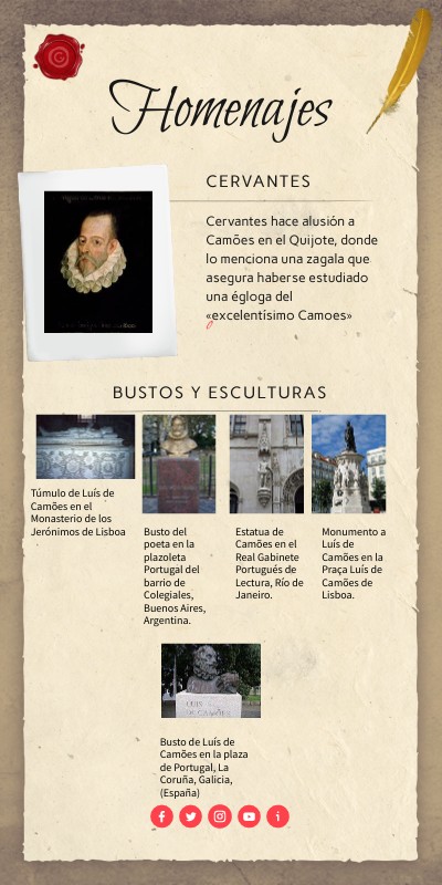 Cervantes hace alusión a Camões en el Quijote, donde lo menciona una zagala que asegura haberse estudiado una égloga del «excelentísimo Camoes»