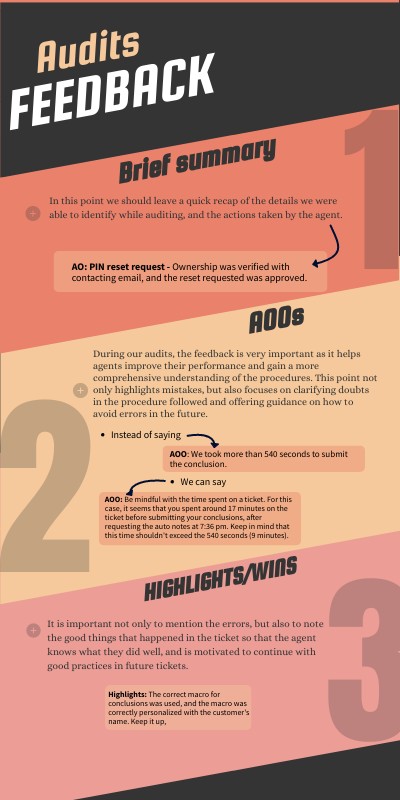 During our audits, the feedback is very important as it helps agents improve their performance and gain a more comprehensive understanding of the procedures. This point not only highlights mistakes, but also focuses on clarifying doubts in the procedure followed and offering guidance on how to avoid errors in the future.