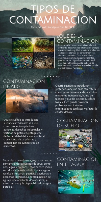 Se produce cuando se agregan sustancias contaminantes a cuerpos de agua, como ríos, lagos y océanos. Estas pueden incluir vertidos de desechos industriales, aguas residuales urbanas, pesticidas agrícolas y desechos plásticos. La contaminación del agua puede afectar la vida acuática, la salud humana y la disponibilidad de agua potable.