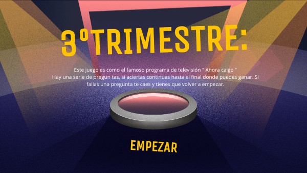 Este juego es como el famoso programa de televisión " Ahora caigo "Hay una serie de pregun tas, si aciertas continuas hasta el final donde puedes ganar. Si fallas una pregunta te caes y tienes que volver a empezar.