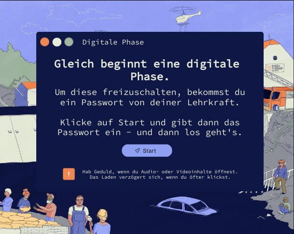 Um diese freizuschalten, bekommst du ein Passwort von deiner Lehrkraft. Klicke auf Start und gibt dann das Passwort ein - und dann los geht's.