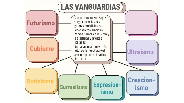 Son los movimientos que surgen entre las dos guerras mundiales. Se reconocieron gracias a Ramón Gómez de la Serna y las tertulias y revistas literarias. Buscaban una renovación total de la literatura y el arte rompiendo el hábito del lector