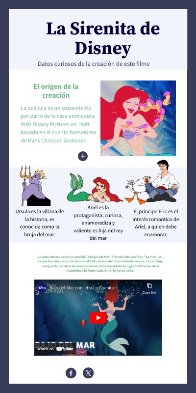 Un dato curioso sobre la canción "Debajo del Mar" ("Under the Sea") de "La Sirenita" es que fue una pieza crucial para el éxito de la película y su banda sonora. La canción, compuesta por Alan Menken con letras de Howard Ashman, ganó el Premio de la Academia a la Mejor Canción Original en 1989.
